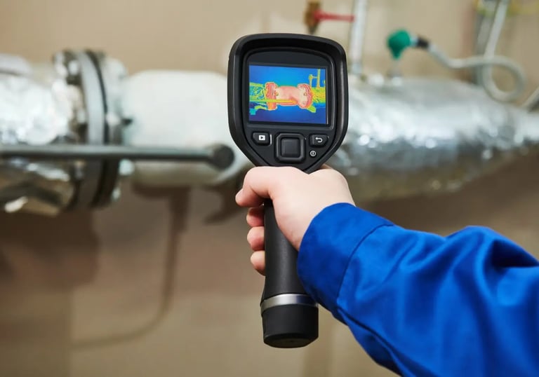 Detecção de fugas de água tanto em tubagens visíveis quanto em sistemas ocultos.